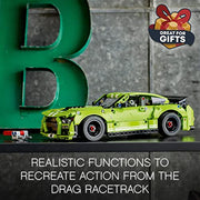 With 544 pieces, this model features authentic details such as a bold green colour scheme, racing stripes, and dual pull-back motors that launch the car into high-speed action. Once built, simply pull it back and release to send it racing down the track — just like a real drag car!